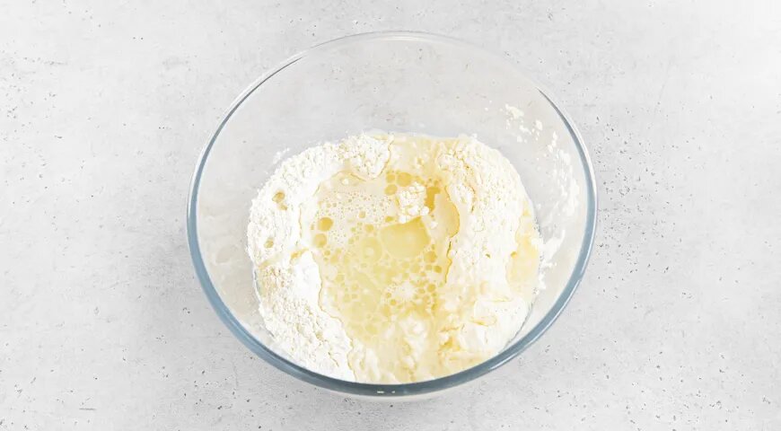 Для начала подготовьте тесто. Подогрейте немного воды. Просейте муку с солью в широкую миску, затем добавьте теплую воду, уксус и растительное масло. Все это тщательно перемешивайте до получения однородной массы.