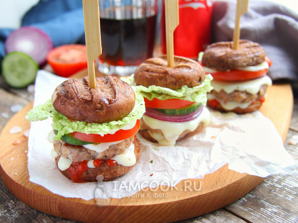 Современные бургеры радуют не только глаз, но и желудок. Вместо привычных пшеничных булочек, на этот раз в главной роли выступают шампиньоны! Это кулинарное открытие, которое удивит и гостей, и вас самих, сообщает Рецепты с фото и видео - только лучшее от Аймкук.