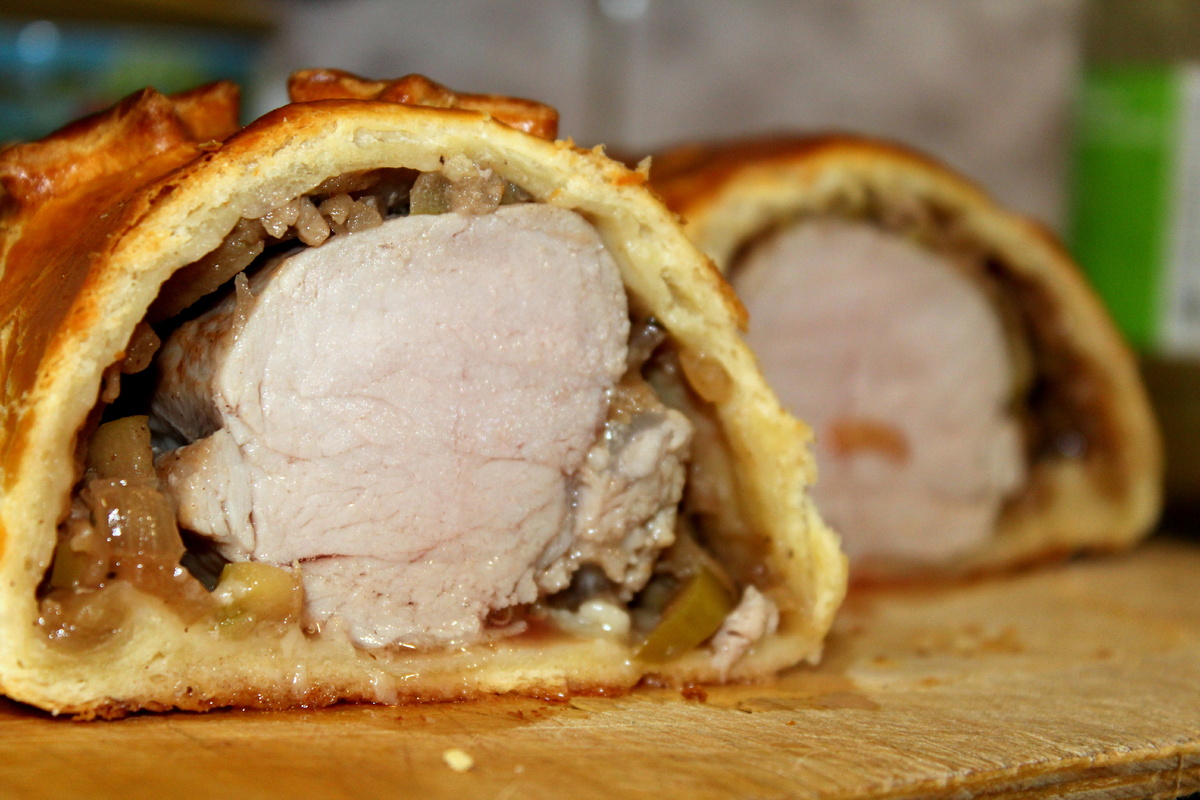 Нежнейшая свиная вырезка, обжаренная до золотистой корочки и завернутая в слоеное тесто с луком, яблоками и тимьяном, представляет собой оригинальное и простое основное блюдо, которое украсит любой стол, сообщает Рецепты от 7dach.