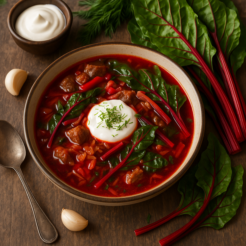 Приготовим кето-борщ с мангольдом! Этот удивительный овощ, хотя и является родственником свеклы, не содержит сахаров, и вы сможете наслаждаться его вкусом.