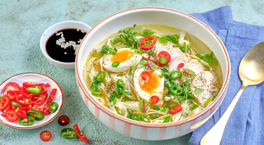 Ключевые элементы этого блюда – это густой и ароматный бульон, а также особенная лапша. Дополнять рамен можно по своему желанию, добавляя разнообразные ингредиенты. Чаще всего в суп кладут мясо – чаще всего курицу или свинину, и варёное яйцо, сообщает канал.