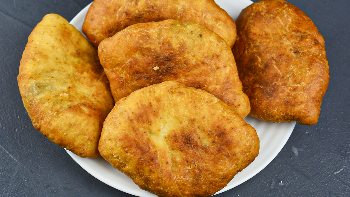 Когда тесто будет готово, посыпьте поверхность мукой, сформируйте лепешки, положите начинку в центр и тщательно защипите края. Нагрейте масло в сковороде и обжаривайте пирожки с обеих сторон до золотистой корочки. Если они получились слишком жирными, избавьтесь от лишнего масла, положив выпечку на бумажную салфетку.