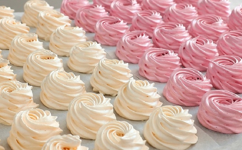 Полученную массу поместите в кондитерский мешок и быстро отсаживайте на пергамент. Оставьте зефир при комнатной температуре на 8–10 часов для застывания. Когда он достигнет нужной консистенции, аккуратно соедините половинки попарно и обваляйте в смеси кукурузного крахмала и сахарной пудры, чтобы зефирки не слипались.