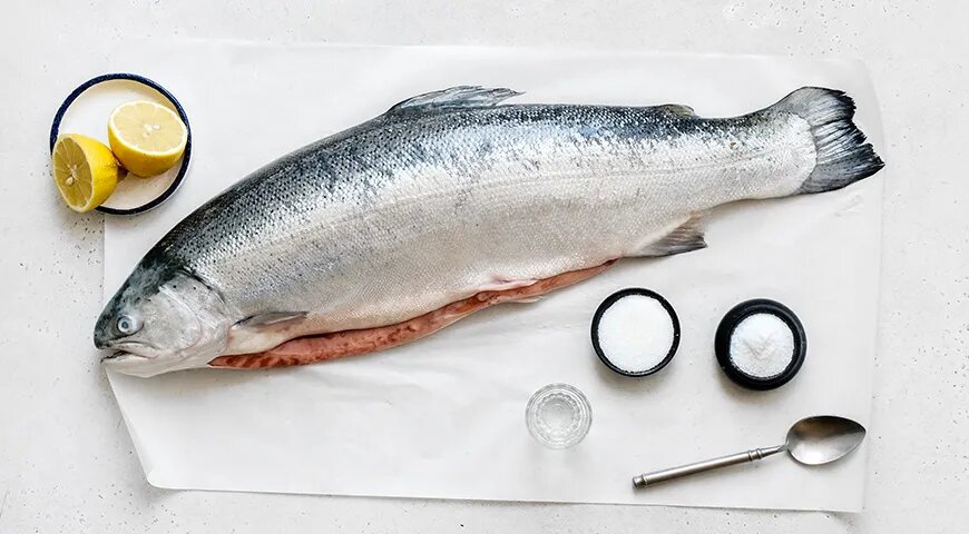 Подготовка к засолке форели начинается с необходимых ингредиентов. Вам понадобятся: рыба (тушка или филе), немного водки, сахар и крупная соль.