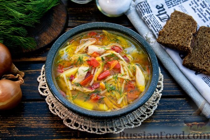 Куриный суп с обжаренной вермишелью дарит отличный вкус благодаря хрустящей текстуре вермишели и яркому аромату сладкого перца. Чтобы сохранить насыщенность блюда, его можно готовить с кусочками жареного куриного мяса, что придаст особый шарм.