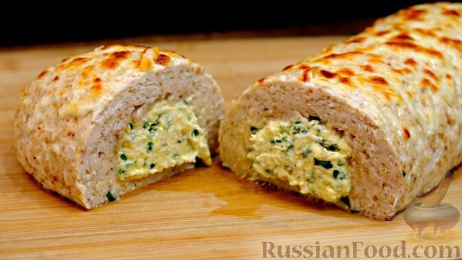 На закуску - куриный рулет с плавленым сыром и зеленью, который проще готовить, чем жарить котлеты. Он получается менее калорийным и гораздо быстрее.