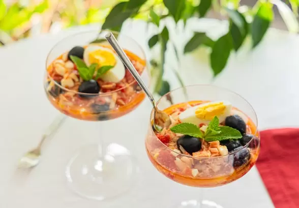 Мурсийский салат — это не просто кулинарное произведение искусства, а яркий символ испанской культуры, который пришел к нам из солнечной Мурсии. Легкий в приготовлении, этот салат является отличным выбором как для праздников, так и для повседневного употребления. А ведь подать его можно и с шиком — в элегантных коктейльных фужерах с тонкой ножкой, что придаст вашему столу особое очарование!