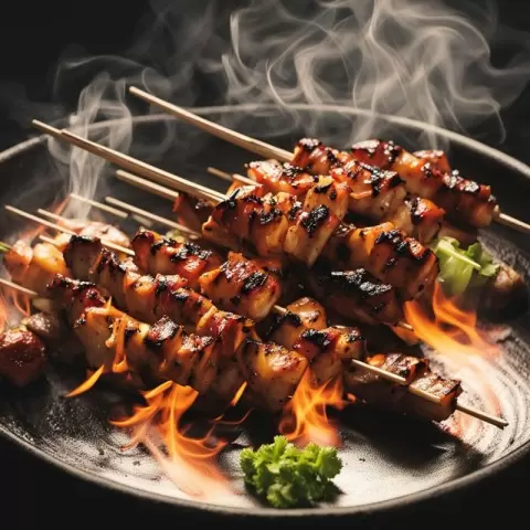 Якутори — истинное кулинарное искусство Японии, где кусочки куриного мяса мастерски нанизываются на шпажки и запекаются на гриле. Важнейшими ингредиентами здесь становятся соевый соус, мирин и мед, которые придают мясу неповторимый вкус. Ключевые этапы его приготовления: