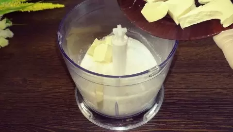 Тесто готовят очень быстро. Для этого в блендер помещают муку, соль и сахар. Затем к ним добавляют кусочки замороженного масла и взбивают до состояния крошки. В смесь добавляется сметана, и всё снова взбивается всего на 10 секунд. После этого нужно сформировать из теста шарик, обвалять в муке и поместить в пакет на 20–30 минут в холодильник.