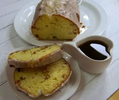 8. Дать кексу остыть, покрыть глазурью и посыпать кокосовой стружкой.