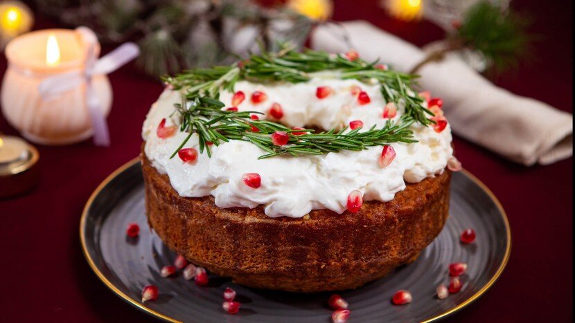 В поисках оригинального десерта для праздничного стола? Лавандовый кекс с розмариновой глазурью и сливочным кремом – идеальный вариант! Праздничный вид, напоминающий рождественский венок, и яркие акценты из зерен граната создадут особую атмосферу волшебства. Лаванда, запеченная в тесте, придаст кексу неповторимое послевкусие с легким цветочным ароматом.