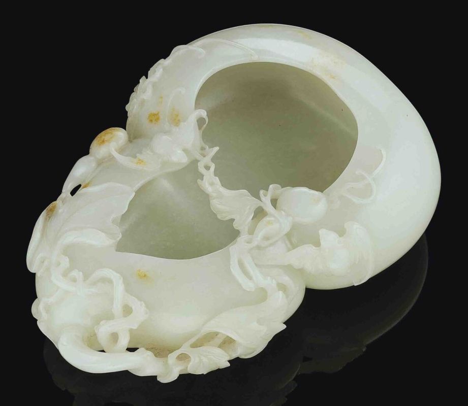 - Нефритовые изделия, напротив, могут похвастаться элегантной резьбой с изображениями листьев и цветов.