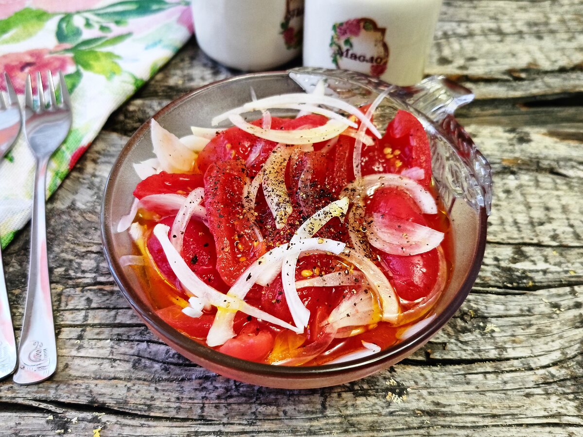 Этот незамысловатый и аппетитный салат стал настоящей находкой для студентов. Всего три ингредиента — соленые помидоры, лук и ароматное подсолнечное масло — позволяют создать блюдо, которое отлично сочетается с жареной картошкой и черным хлебом. Для него прекрасно подойдут как соленые, так и маринованные помидоры.