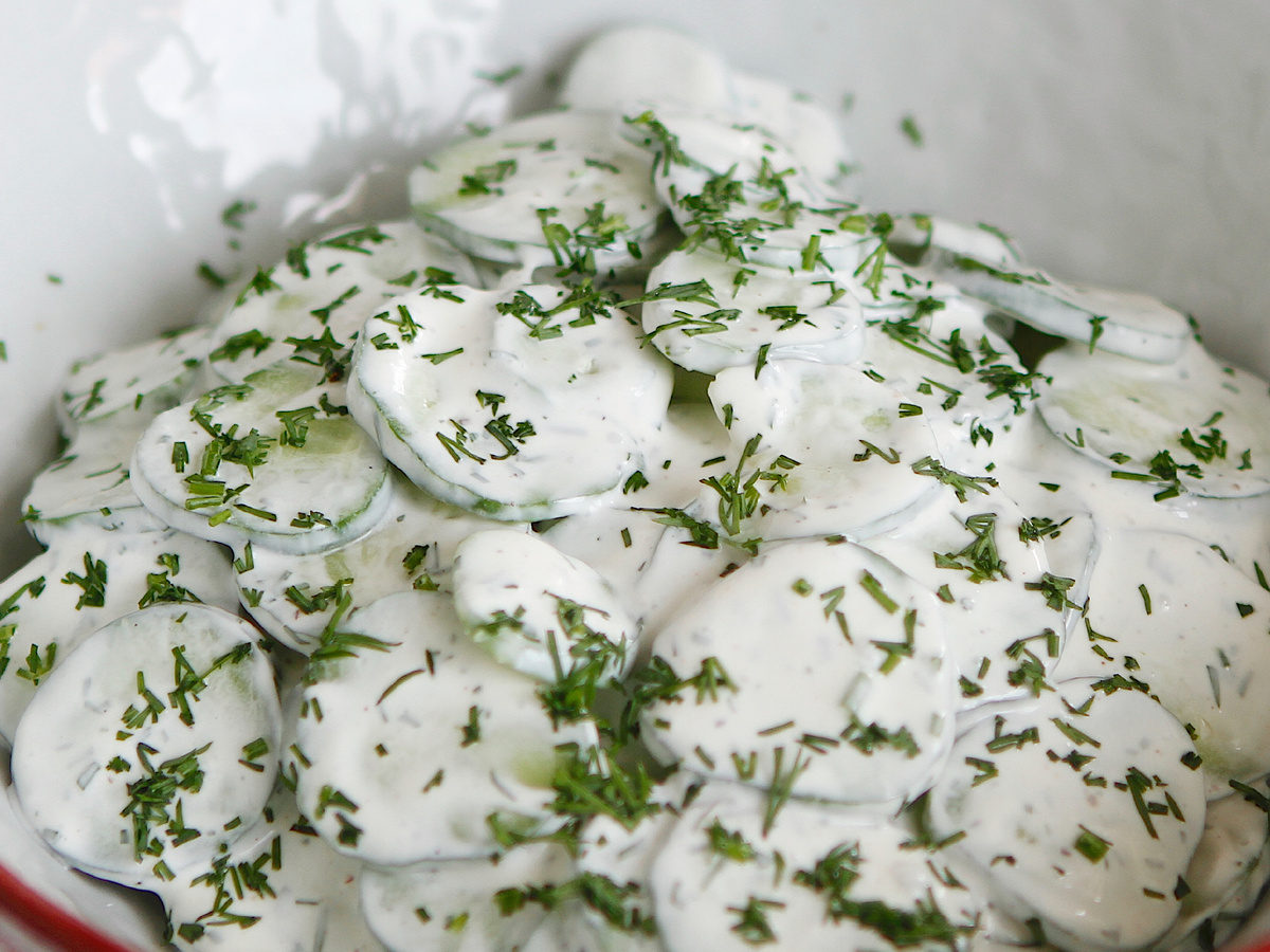 1. Огурцы: Промыть 350 г огурцов, обсушить и нарезать тонкими кружочками. Чем тоньше, тем лучше, особенно если кожура жесткая. Удалить крупные семечки или заменить огурцы на другие сорта.