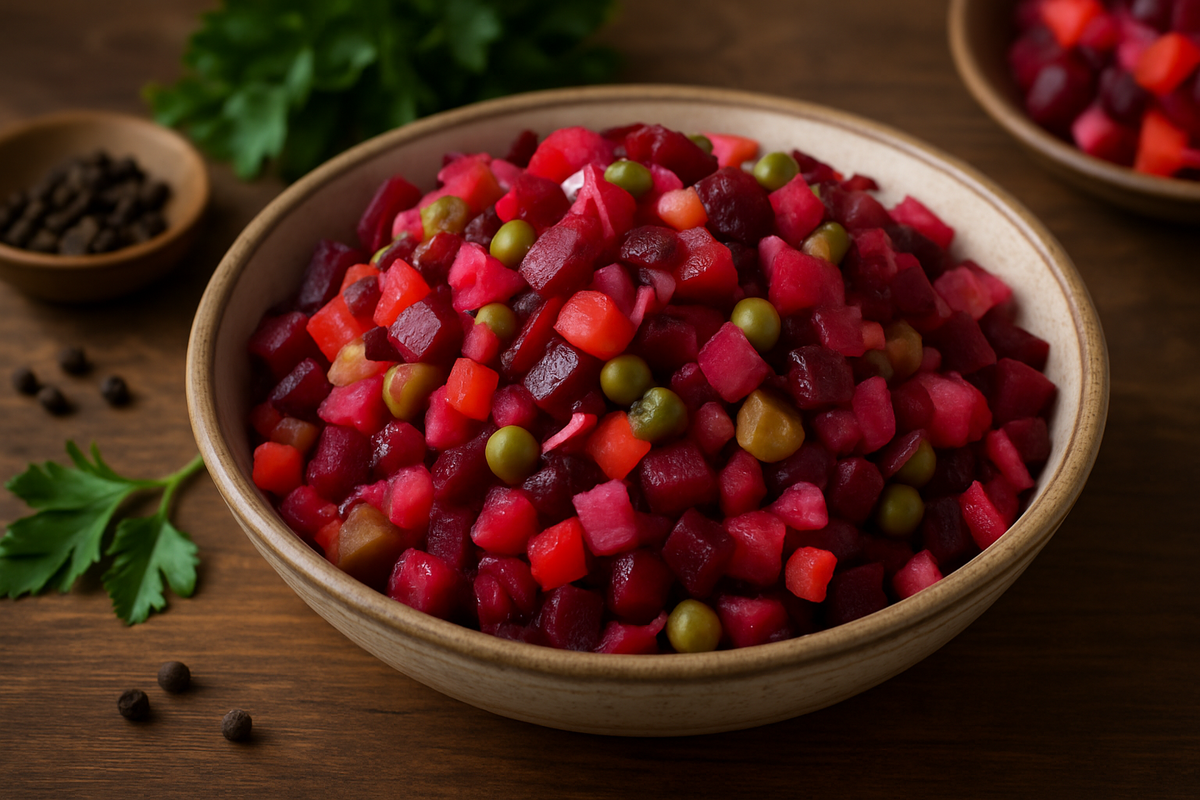 Винегрет — это не просто салат, а символ домашнего тепла и ностальгии, замешанный из ярких кусочков свеклы, картофеля и соленых огурцов. Его история началась далеко от России, как многие могут думать.
