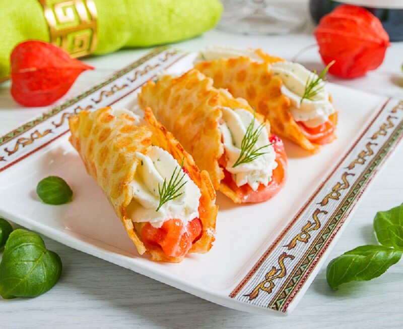 В преддверии Нового года особое внимание стоит уделить закускам, способным удивить гостей. Эта закуска с красной рыбой станет звездой вашего стола! Оптимальный выбор — малосольный лосось, семга или форель. Для разнообразия можно использовать сибас или горбушу. Основой блюда станут тонкие вафли из сырного теста, которые легко нафаршировать различными начинками.