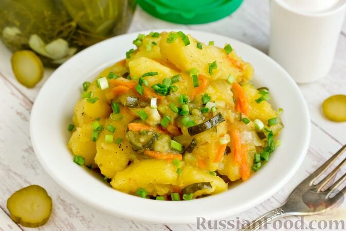 - Картошка, тушеная с солеными огурцами: В этом привычном блюде добавление соленых огурчиков придаст оригинальность. Тушеная картошка с луком, морковью и огурцами порадует легкой кислинкой и насыщенным вкусом.