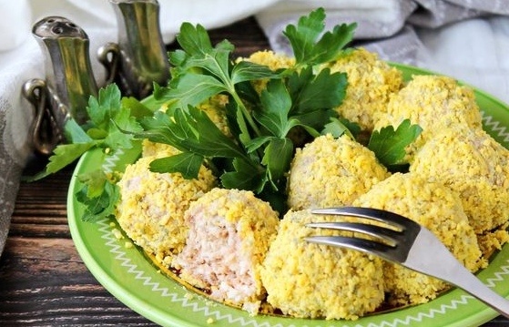 7. Закусочные шарики 'Мимоза' готовы! Украсьте их свежей зеленью и подавайте к столу.