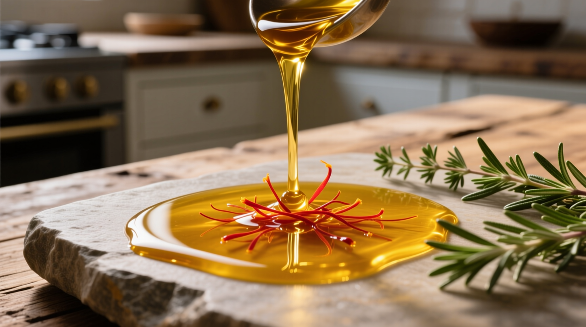 Представьте, как солнечный оттенок шафрана сливается с нежным вкусом оливкового масла. Этот великолепный тандем — не просто набор ингредиентов, а гармония древней кулинарной традиции, где связано «красное золото» Востока и «зелёное золото» Средиземноморья. Разработанный без кисломолочной основы, этот маринад идеально подходит для рыбы, морепродуктов и овощей, не нуждающихся в кислых нотах.