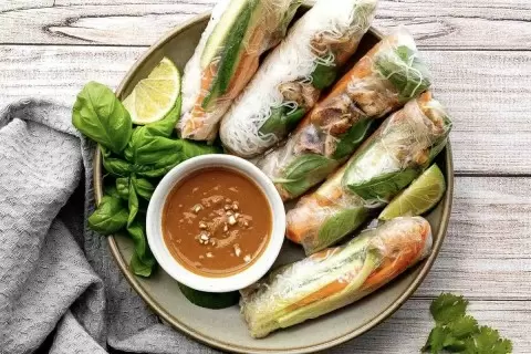 В каждом кусочке Rolle Goi Cuon скрывается тихий эффект простоты: прохладная прозрачность рисовой бумаги и свежесть трав напоминают о путешествии, где главное — ощущение лёгкости и баланса.