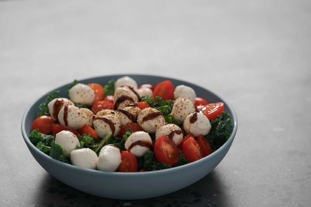 Подобный салат богат витаминами, особенно если в него входит много зелени и сыра. Регулярное, хотя и умеренное, потребление бальзамического соуса может снизить риск сердечно-сосудистых заболеваний и улучшить работу пищеварительной системы. Вместе с тем, его применение способно помочь организму справиться со стрессами и облегчить соблюдение диет. Тем не менее, стоит учитывать, что процесс приготовления соуса из бальзамического уксуса трудоемок, что обуславливает высокую стоимость этого продукта.