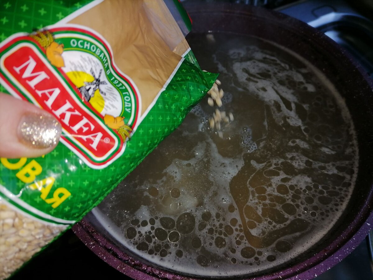 Не стоит добавлять сырую перловку в суп – это может привести к изменению цвета бульона на синеватый. Лучше предварительно отварить крупу, а затем добавлять её в рассольник.