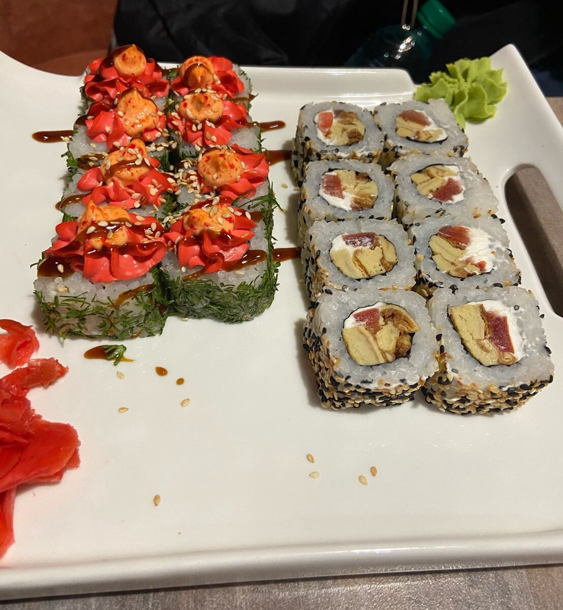По прибытии они были приятно удивлены атмосферой заведения: изобилие зелени создавало уют и расслабляющую обстановку, а музыкальное сопровождение добавляло экзотичности. Официант Арсений быстро провел экскурсию по меню и принял заказы. На столе оказались роллы самурай, горячий дракон, гедза с креветками и говядиной, а также фирменные десерты ресторана.