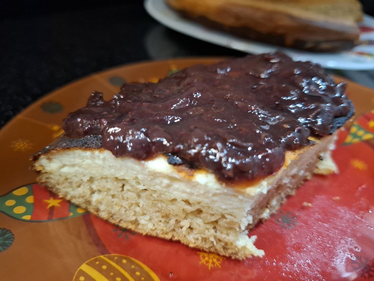 В результате пирог получил высокий оценочный балл по вкусу — «очень вкусно». По мнению тестировавшей, блюду не хватило лёгкой кислинки, поэтому был добавлен смородиновый кето-джем, который придал необходимую свежесть. В следующей попытке планируется добавить в творог ягоды, но в этот раз отложили их из-за опасений, что замороженные ягоды дадут сок и окрасят начинку.