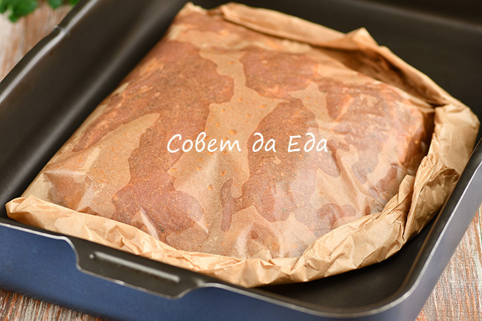 В этом варианте используется мякоть свиной лопатки (1 кг), которую нужно обсыпать солью, сушеным чесноком и смесью перцев. Для запекания потребуется большой кусок пергамента, который укладывается в форму, и на него помещается мясо. Закрыть пергамент с обеих сторон и запекать в духовке при 180 градусах на протяжении одного часа. Благодаря такому методу, мясо не только запечется, но и сохранит все свои соки, что сделает его нежным и ароматным.